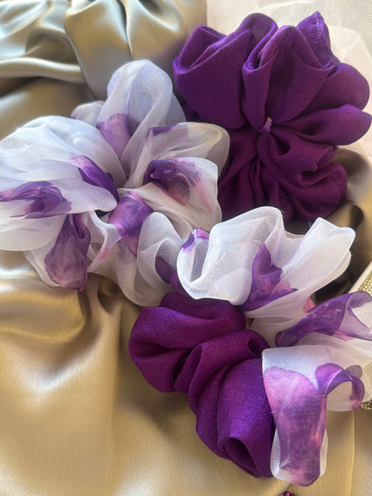 Lavender Duo- A Soft & Fluffy Satin Scrunchies Combo (Large +Small Size)