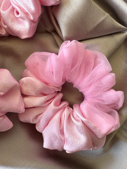 Pink-O Fuzz -A Soft & Fluffy Satin Scrunchies Combo (Large +Small Size)