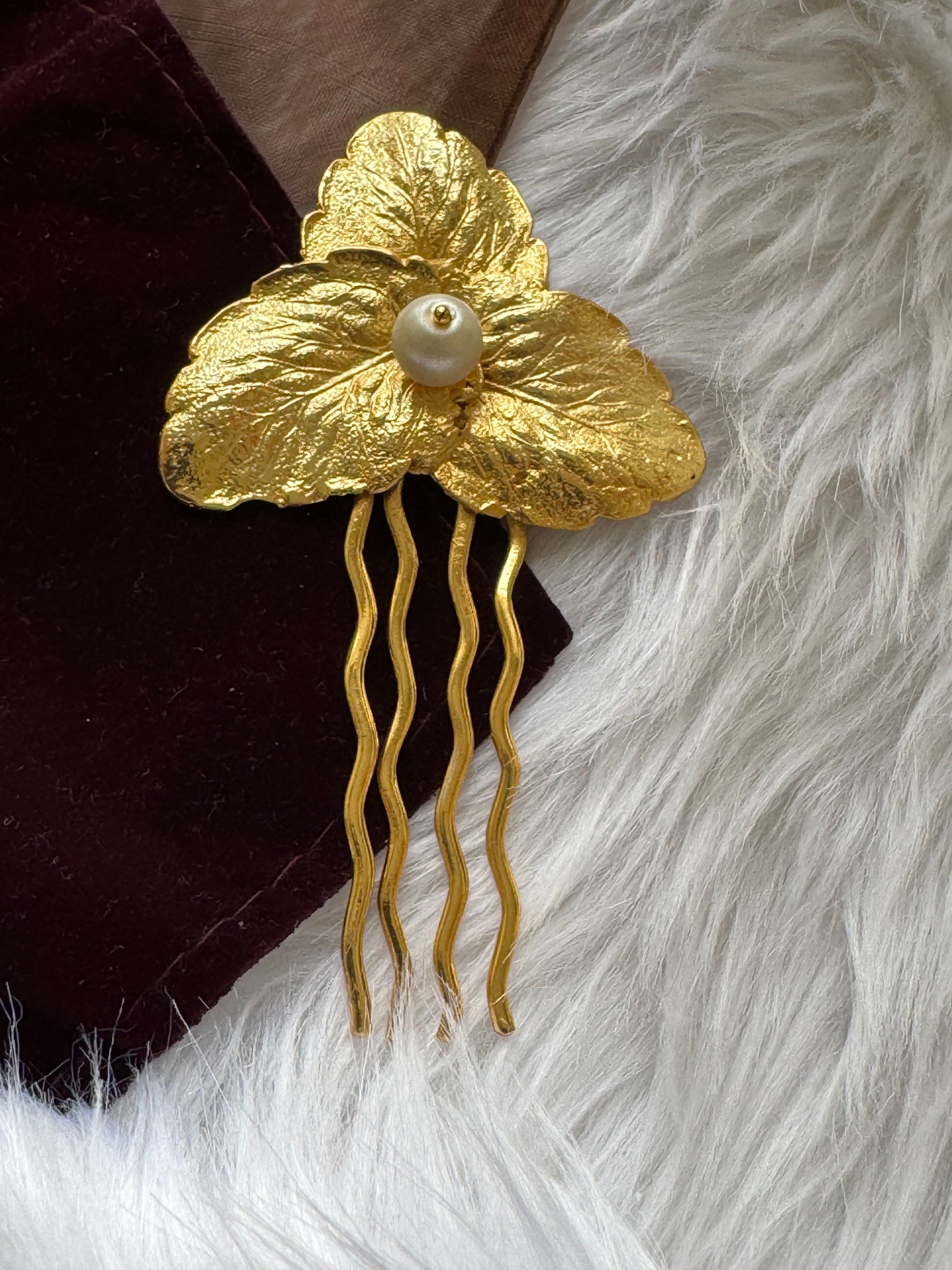 Pearl Golden Leaf - Statement Pearl Hair Pin