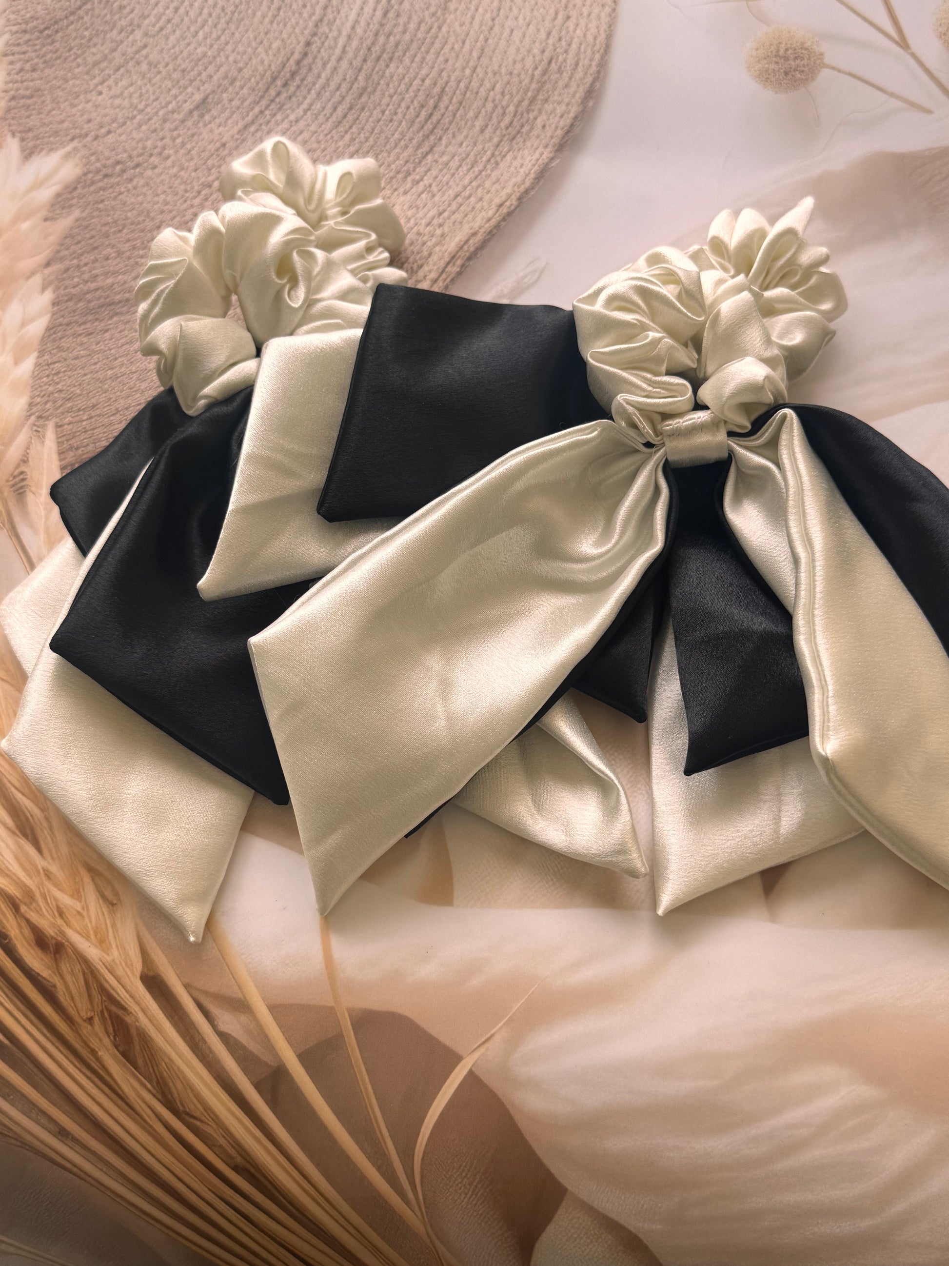 Retro Classic- White o Black - Satin Dual Long Tail Scrunchies