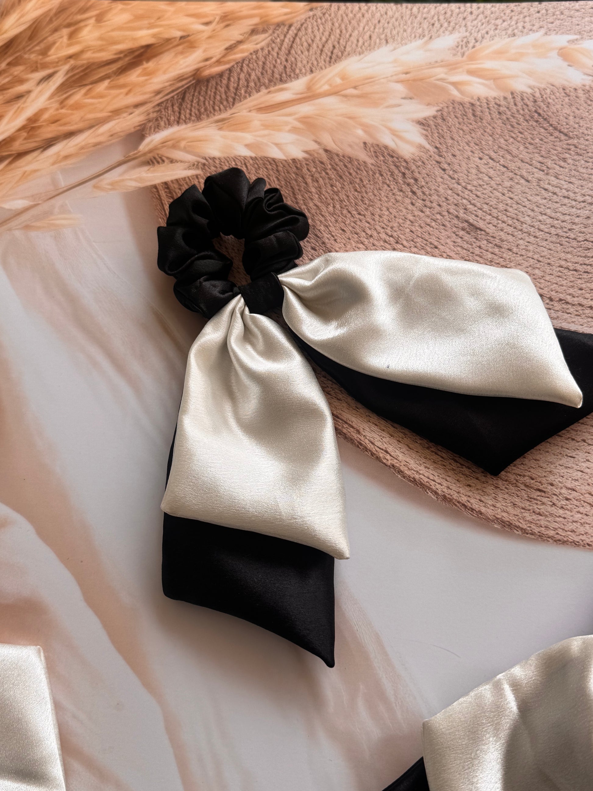 Retro Classic- Black 0 White - Satin Dual Long Tail Scrunchies